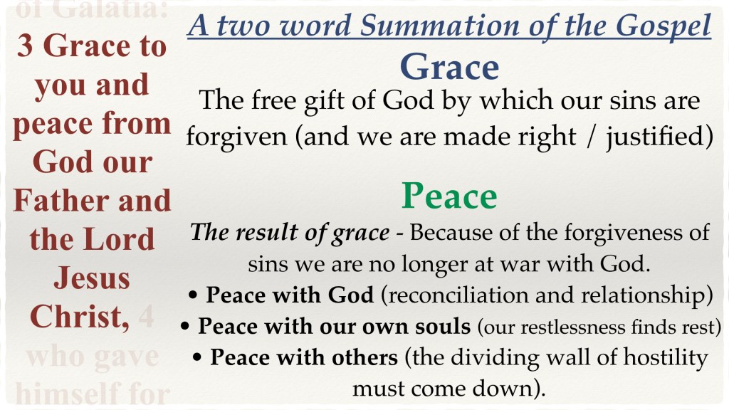 These two words – Grace and Peace – are the summary of the entire gospel. Simply put: