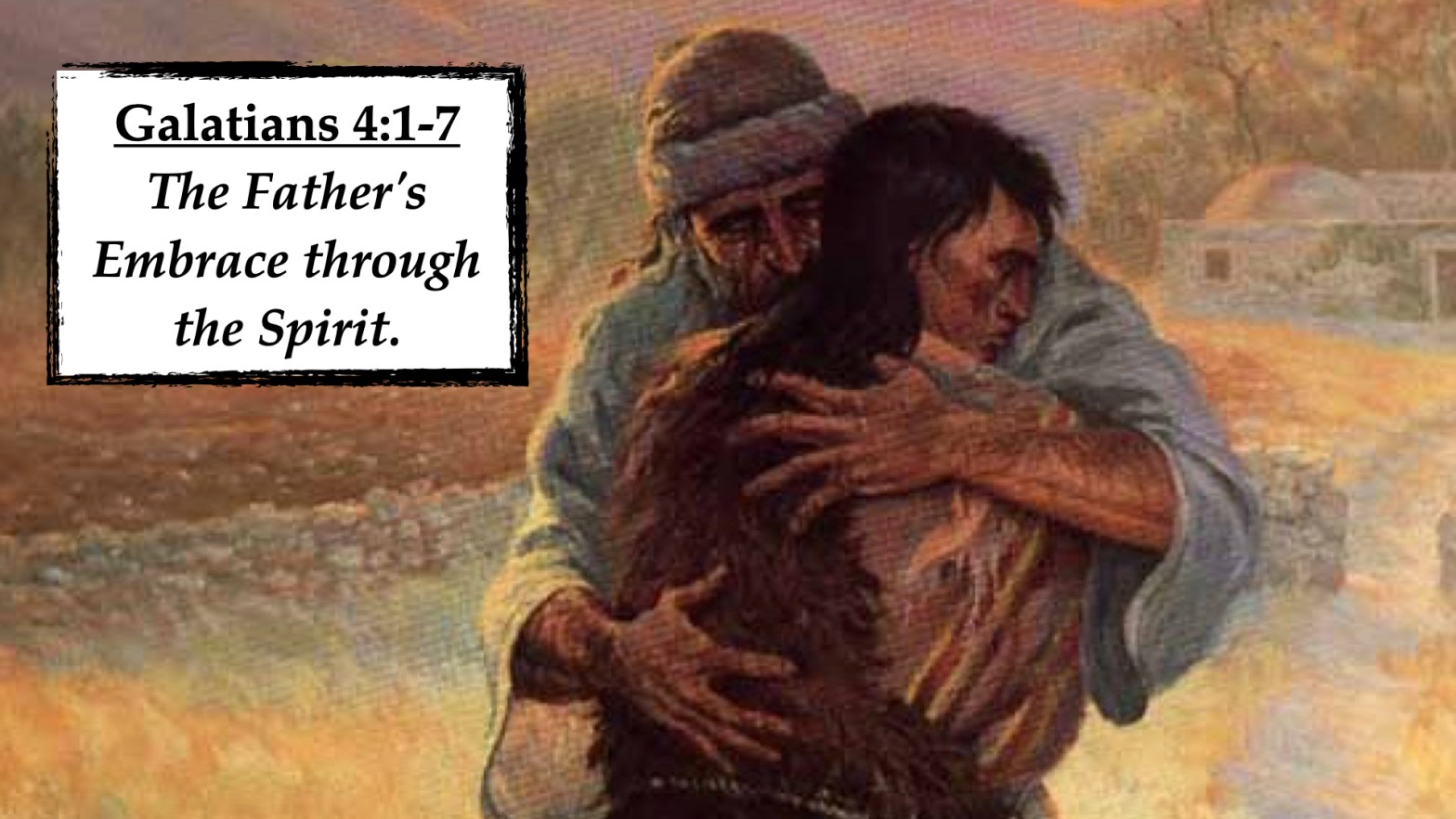 The father embracing the son is an image of the Spirit being poured out into the hearts of sons and daughters of God. The father could have stood off and been very stoic and say to the son, “I love you, welcome home.” The son would have been pleased, I am sure, but he would not of experienced that love. Instead, the father runs to the son, embraces him, and kisses him. The son experiences the depth of the Father’s love. The father’s embrace and kiss are felt when the Spirit is sent into your heart.