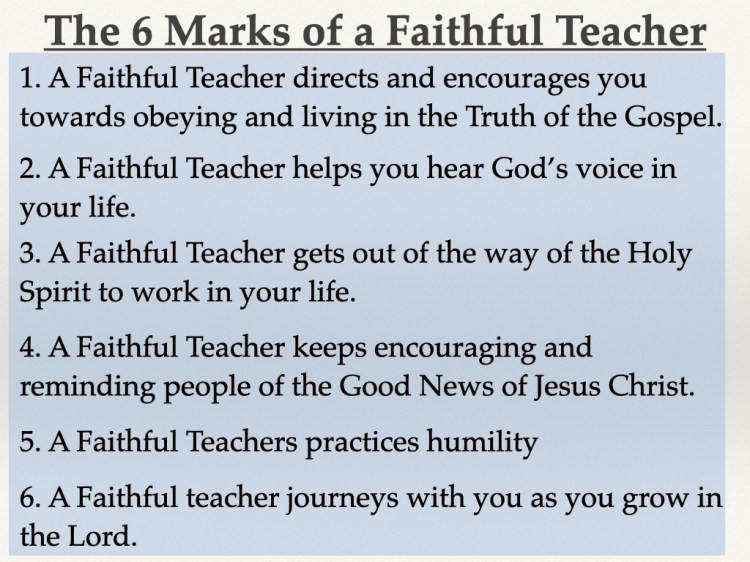 - A Faithful Teacher directs and encourages you towards obeying and living in the Truth of the Gospel.