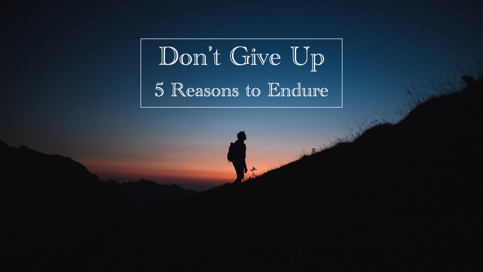 Don’t’ Give Up. The encouragement to endure is an important and timely message for our day. Currently, the covid virus is surging again. Our politics are as divided as ever, hurricanes and fires strike our coastal areas, and there are several social problems within our communities. These things and the many other daily worries add stress to our lives to the point that it causes a person to want to disengage from the world, to give up. Thus, the message this morning, “Don’t Give Up. Endure.”